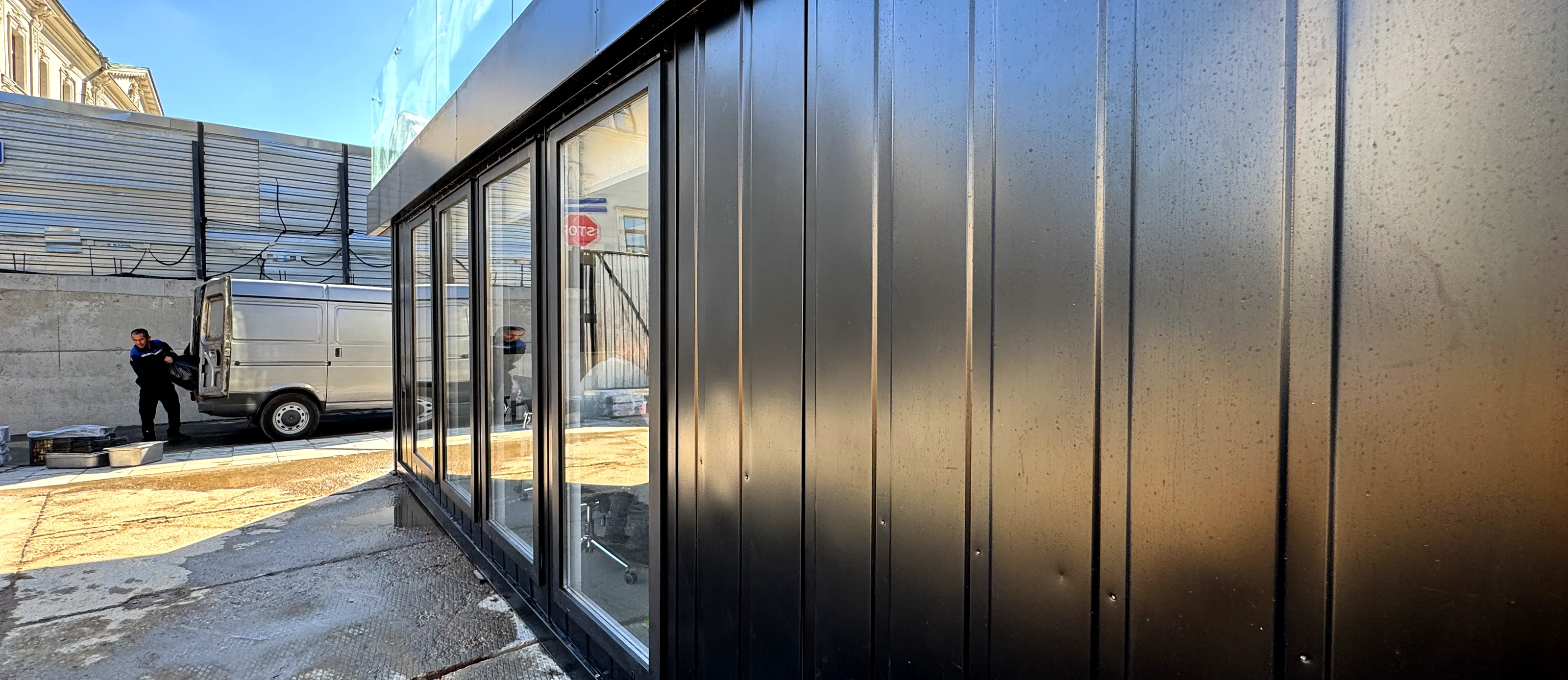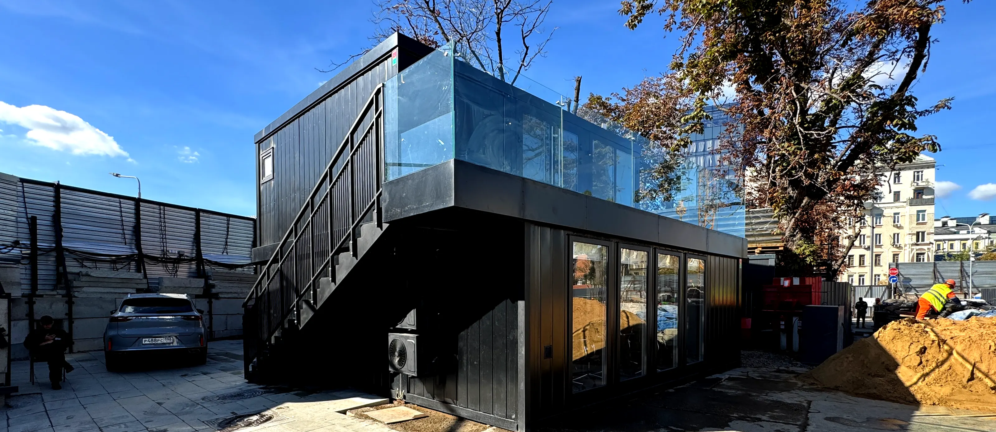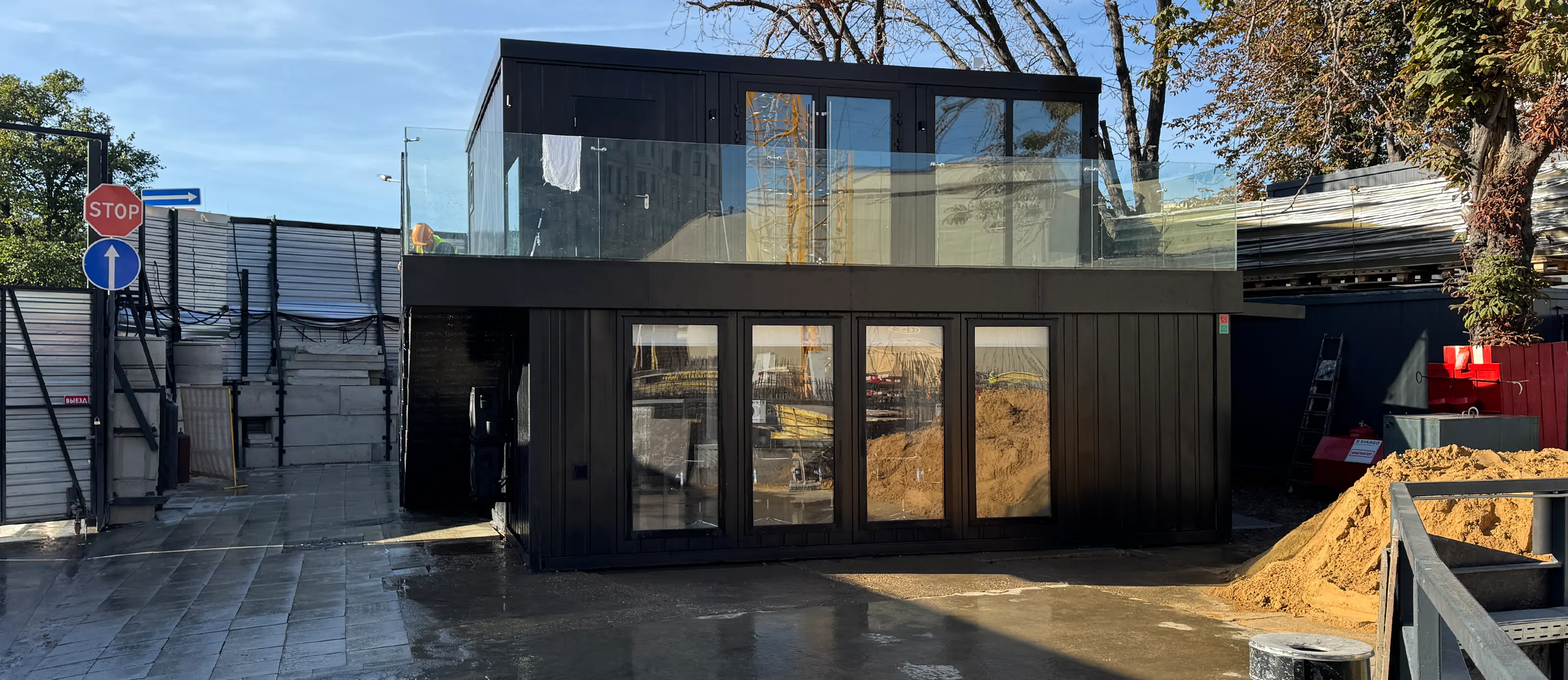 Компания R4S получила современный офис продаж площадью 124 м², полностью готовый к эксплуатации. Двухэтажное модульное здание сочетает функциональность, стиль и мобильность — идеально подходит для презентации проектов и работы с клиентами.