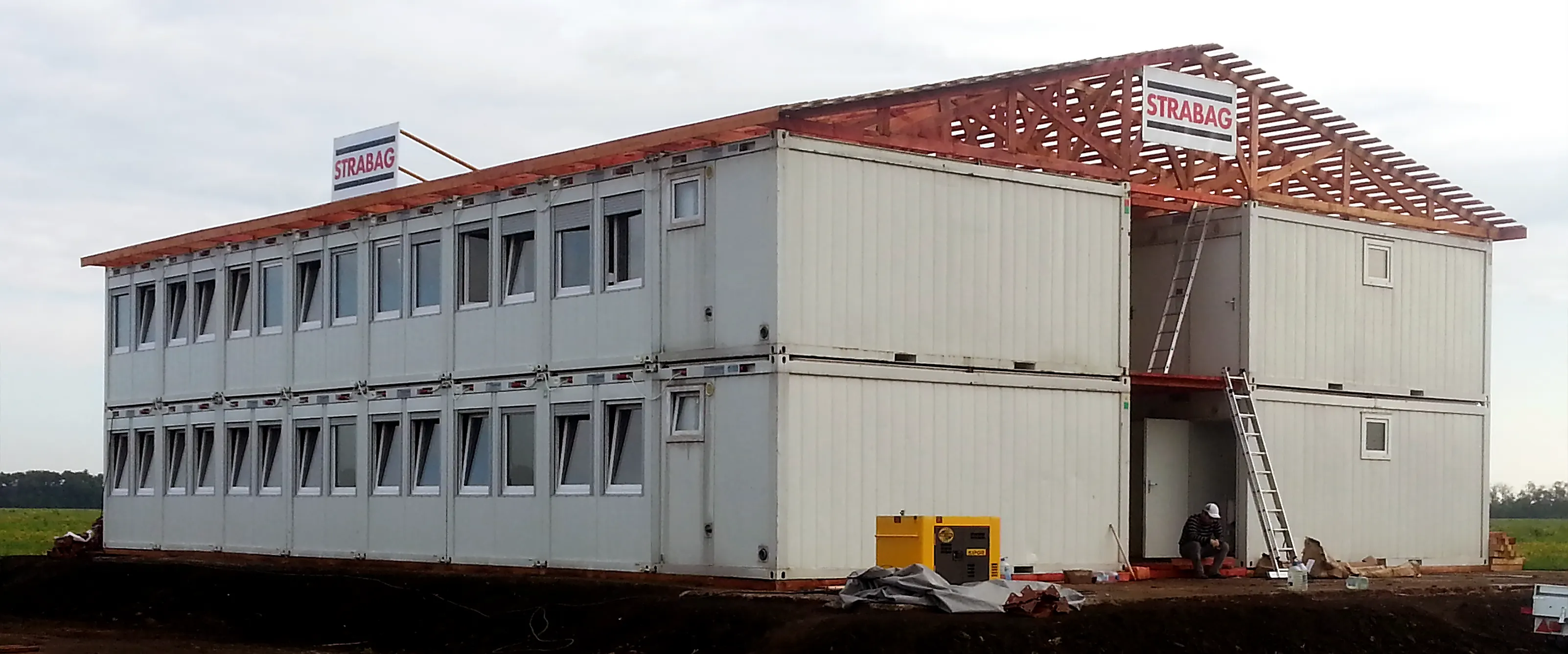 Компания STRABAG получила современный двухэтажный модульный штаб строительства площадью 631 м², выполненный из 32 б/у блок-контейнеров Контейнекс. Комплекс оснащён офисными помещениями, душевыми, туалетами и переговорной, полностью готов к эксплуатации и обеспечивает комфортные условия для инженерно-технического персонала.